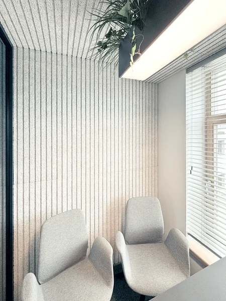 Plaatide eriline soonestruktuur on visuaalselt väga mõjuv, aga neelab ka liigset müra, vähendab kaja ja laseb ruumil hingata. Lõpptulemusena sünnib keskkond, mis on mugav, tasakaalukas ja ideaalne sisukate vestluste jaoks.